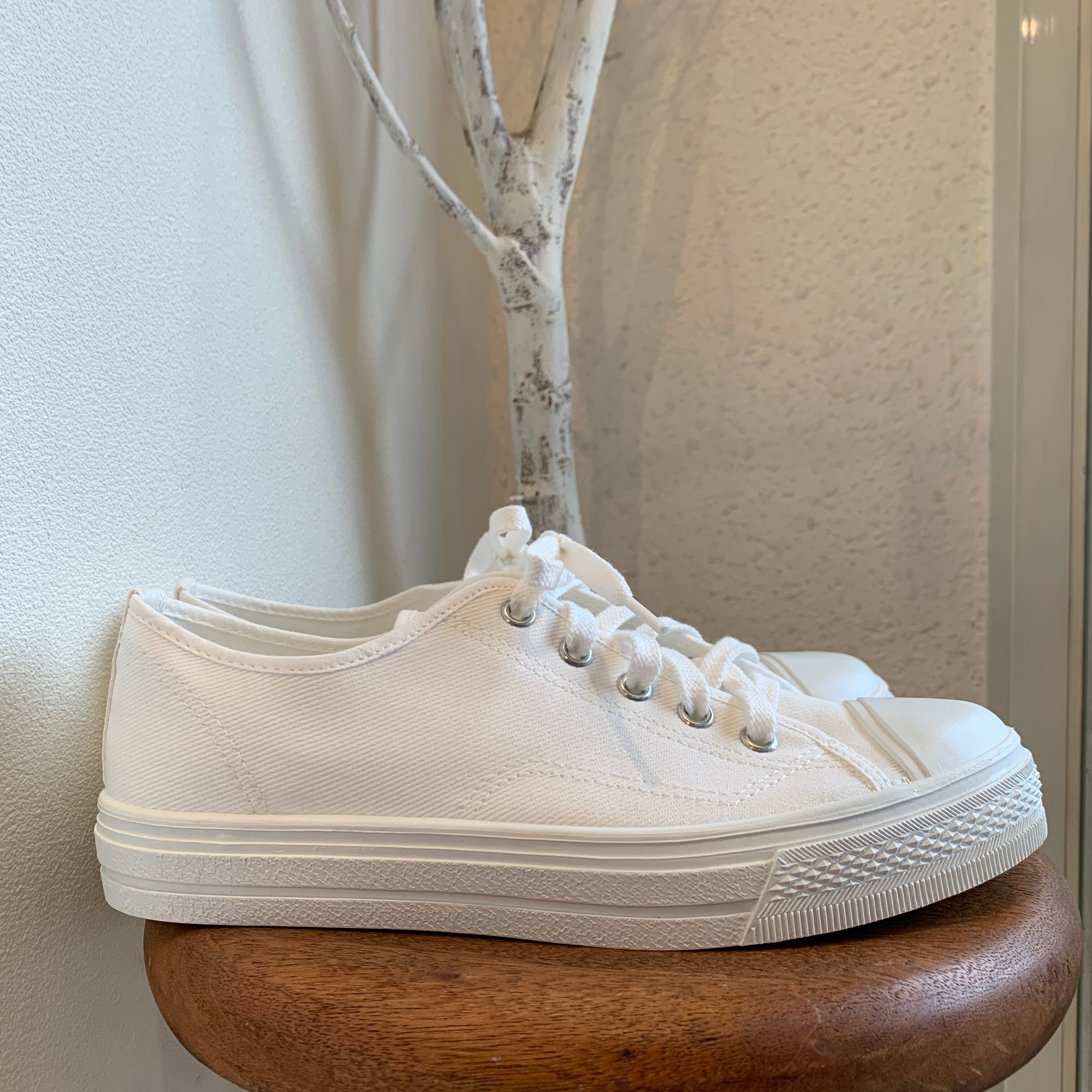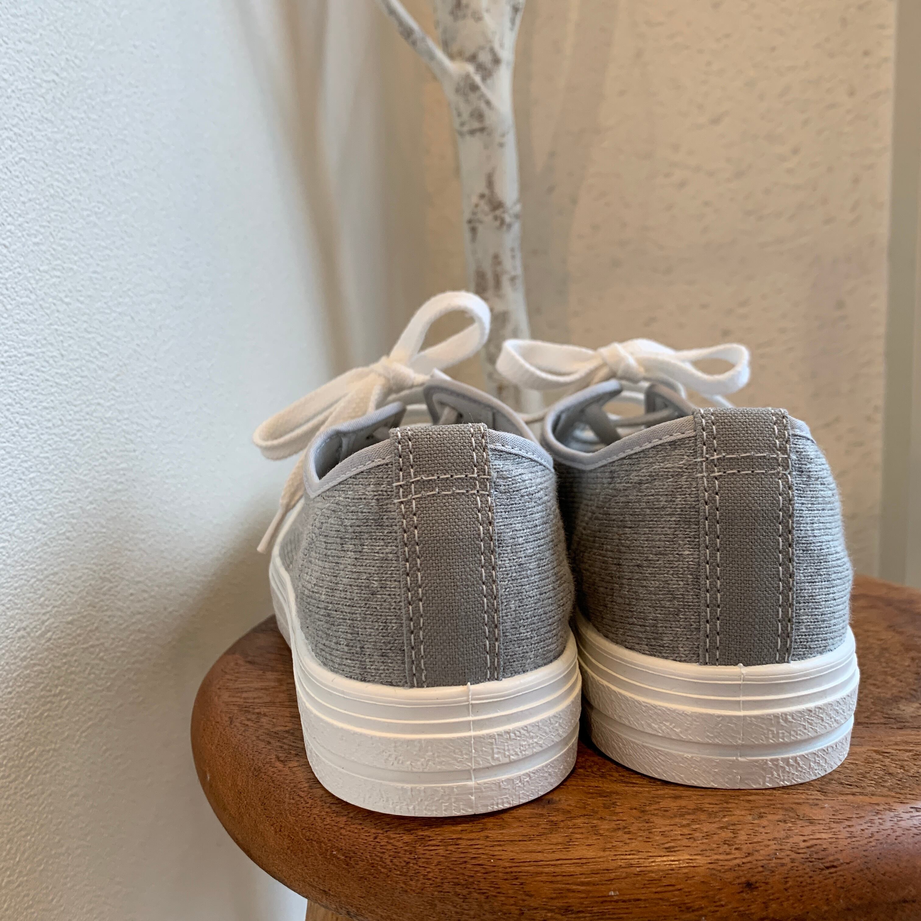 シンプルなレースアップのスニーカーは、流行に左右されないベーシックなデザインです。